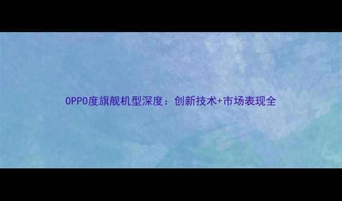 OPPO度旗舰机型深度创新技术市场表现全