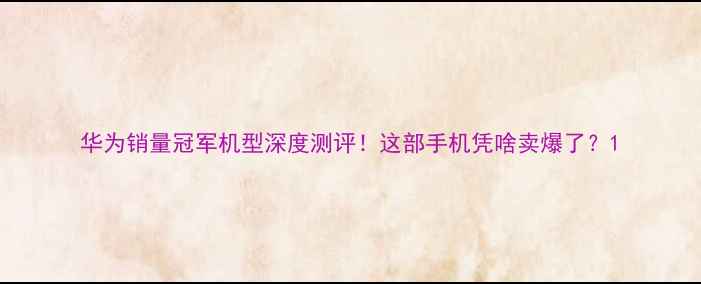 华为销量冠军机型深度测评!这部手机凭啥卖爆了?