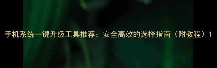 手机系统一键升级工具推荐:安全高效的选择指南(附教程)