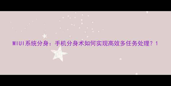 MIUI系统分身手机分身术如何实现高效多任务处理