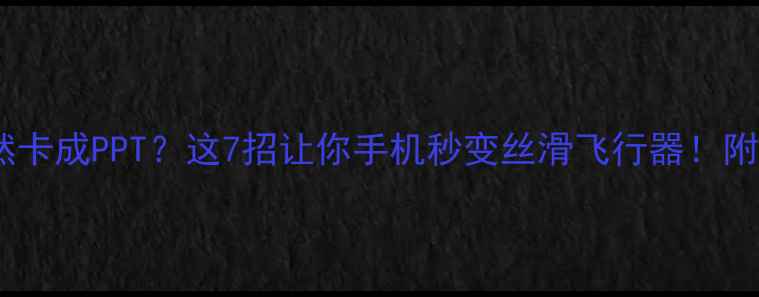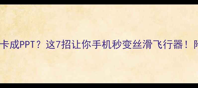 📱💥手机突然卡成PPT?这7招让你手机秒变丝滑飞行器!附保姆级教程