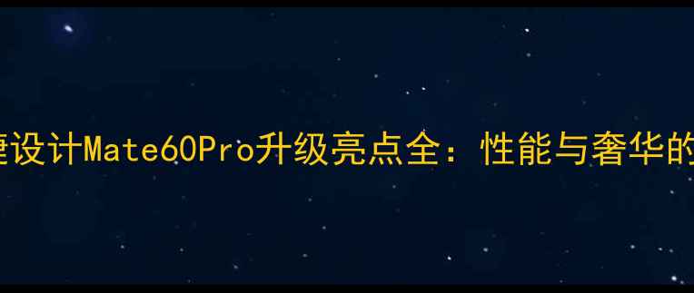 华为保时捷设计Mate60Pro升级亮点全性能与奢华的完美融合
