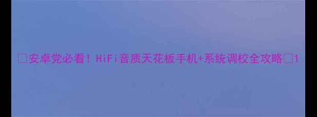 安卓党必看HiFi音质天花板手机系统调校全攻略