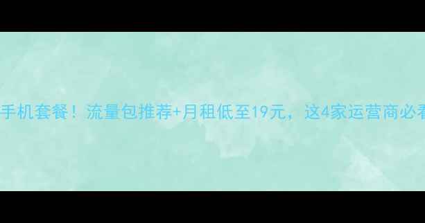 最划算手机套餐!流量包推荐+月租低至19元,这4家运营商必看攻略