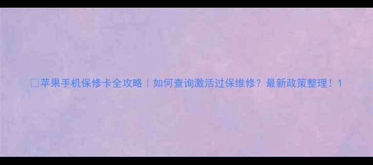 🔍苹果手机保修卡全攻略|如何查询/激活/过保维修?最新政策整理!